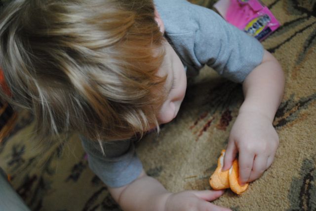 DAM received a basketball goal.  He's been observing the neighbors play, but the Easter Bunny thought it would be best if he practiced on a shorter hoop before he took his game to the street.