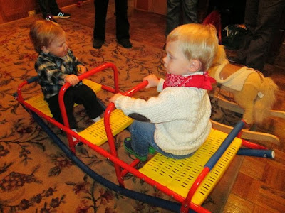 John and Grady enjoyed the seesaw, too. Grady's a good bit older than John, but John has a weight advantage, as can be clearly seen here.